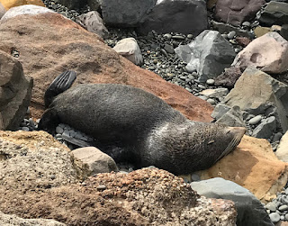We had visited Oamaru on our way south almost two months ago, and had found it to be a friendy and interesting place. Hadn’t changed. The mooring was free for as long as we needed it. The Victorian theme was still amusing. And this time, we walked out to where the little blue penguins and sea lions come ashore each day. The timing was off for the penguins — we’ve seen many of them anyway — but it was cool to gape at the sea lions lounging on the rocks. Kiwi Logic was also here, and we enjoyed further socializing with them.